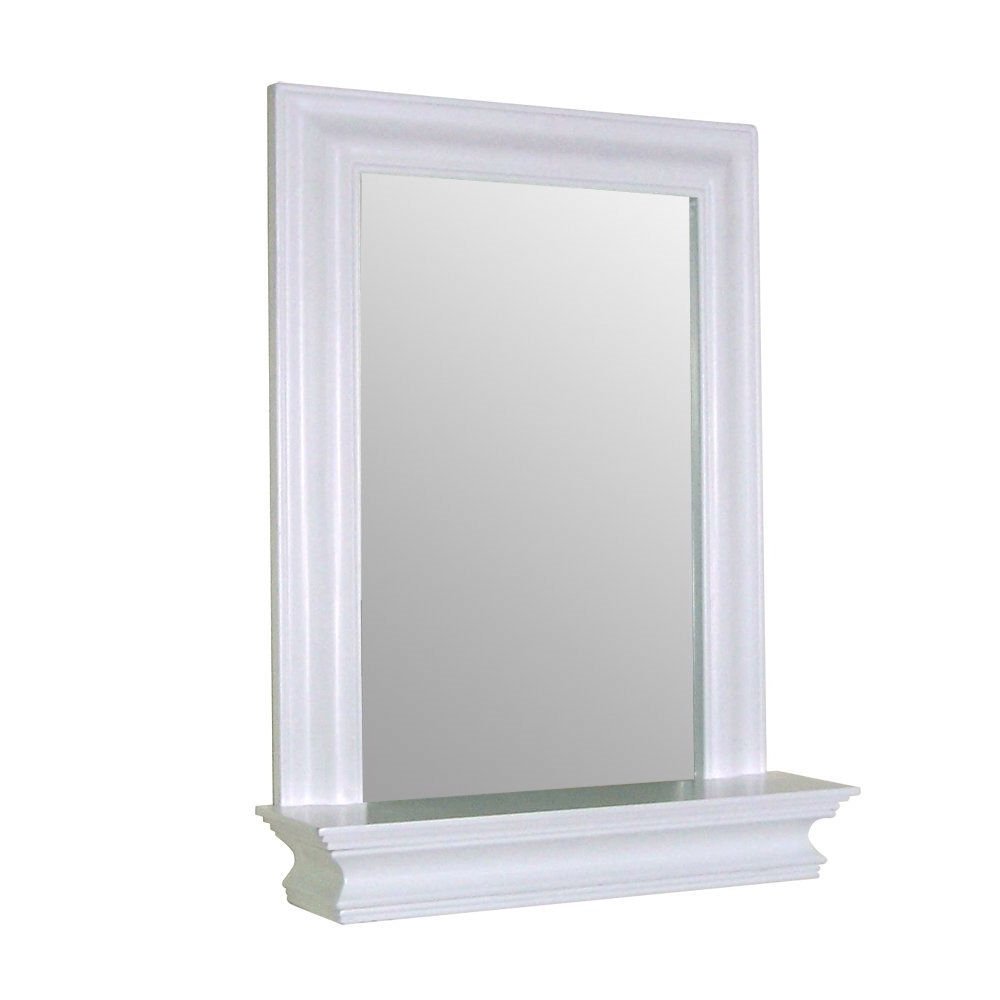 Framed Bathroom Mirror Rectangular Shape with Bottom Shelf in White Wood Finish Framed Bathroom Mirror Rectangular Shape with Bottom Shelf in White Wood Finish